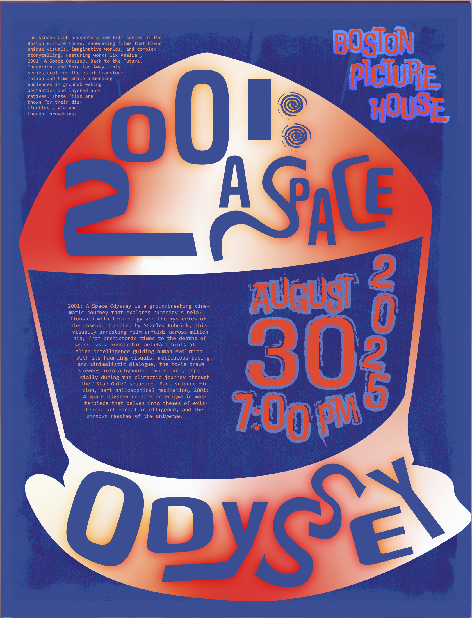 A multi-part project for 2025 Graphic Design Studio consisting of a risograph animation, 4 postcards, 3 posters, a zine, and constructing an exhibit. I worked on the social media marketing team for the exhibition.