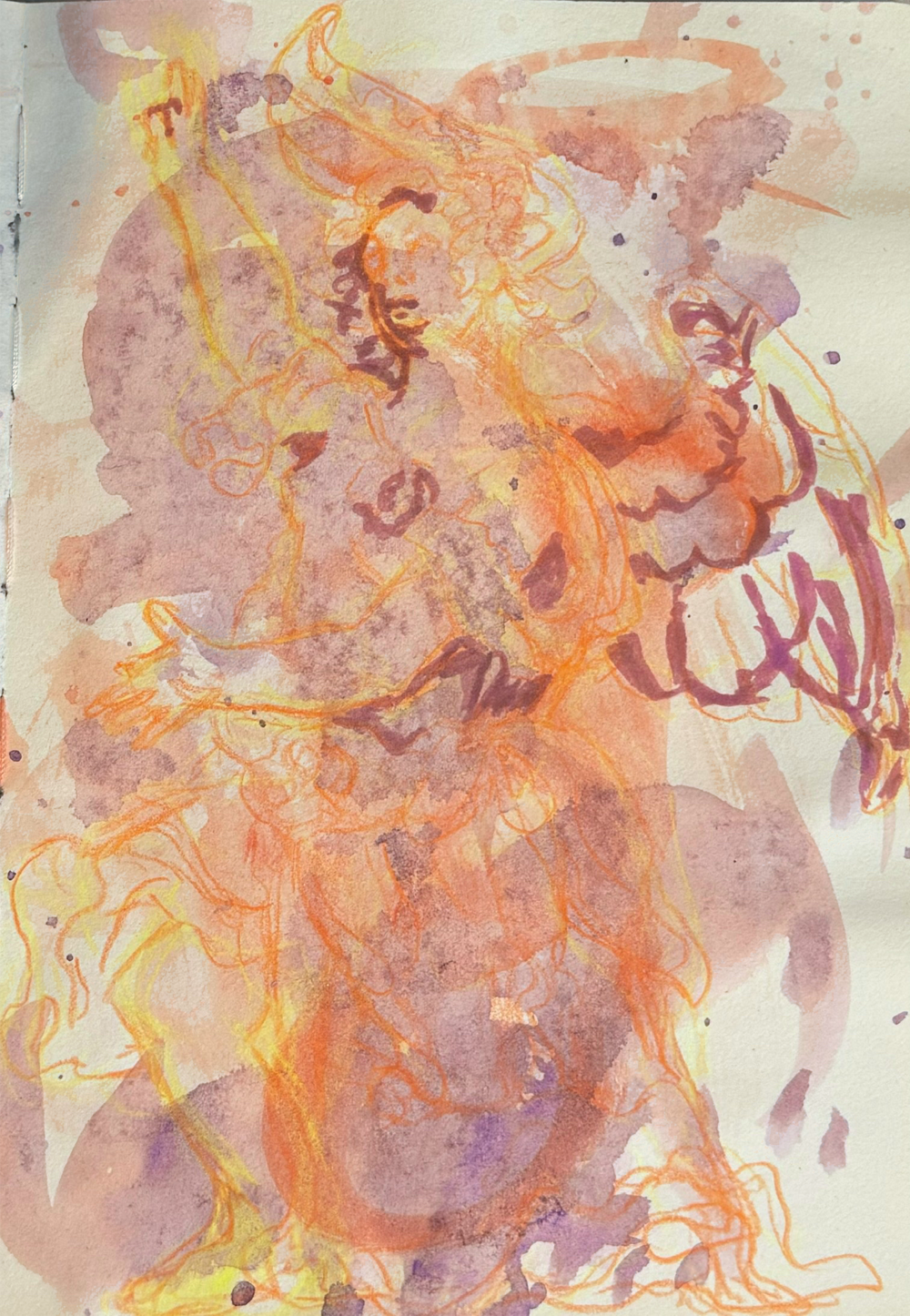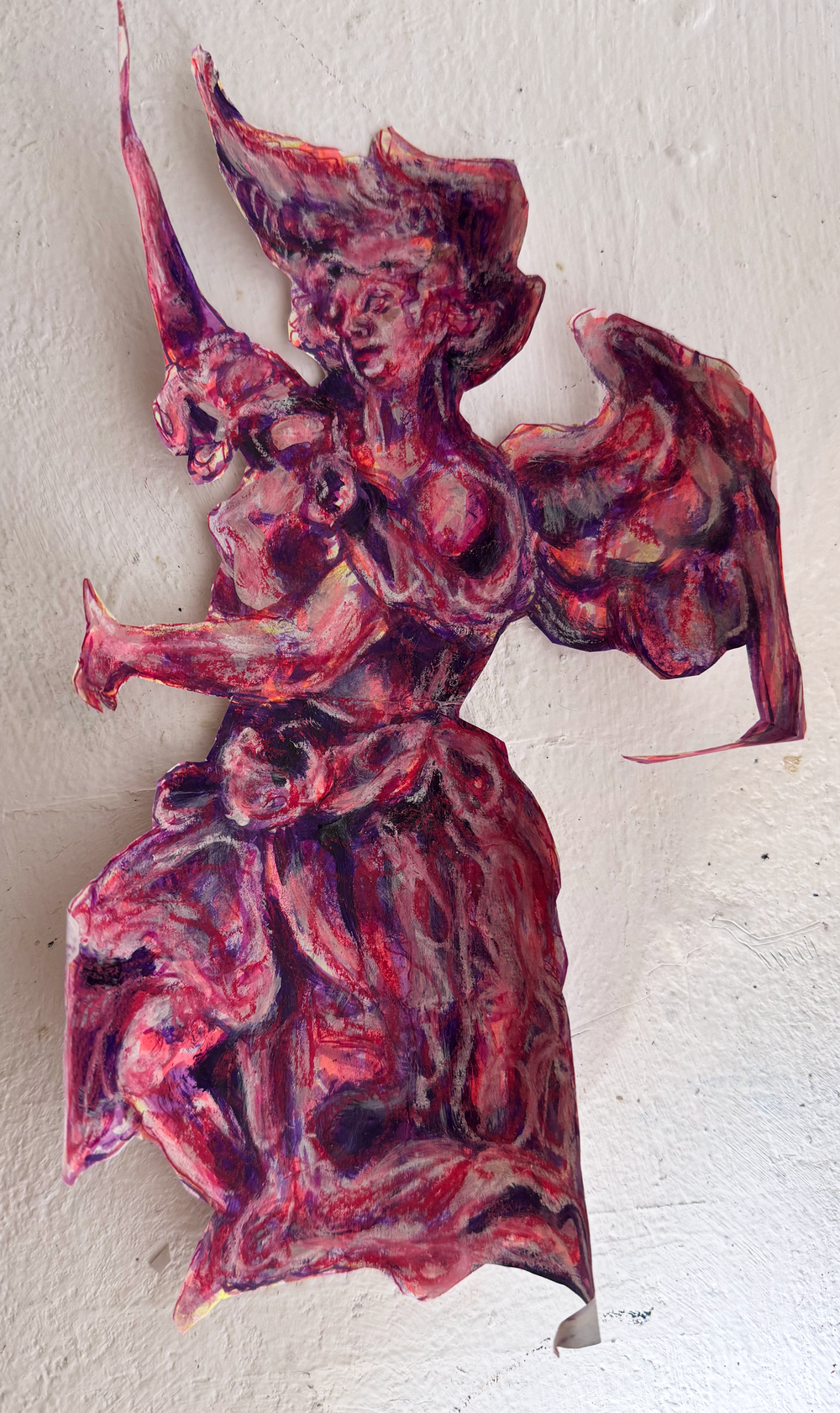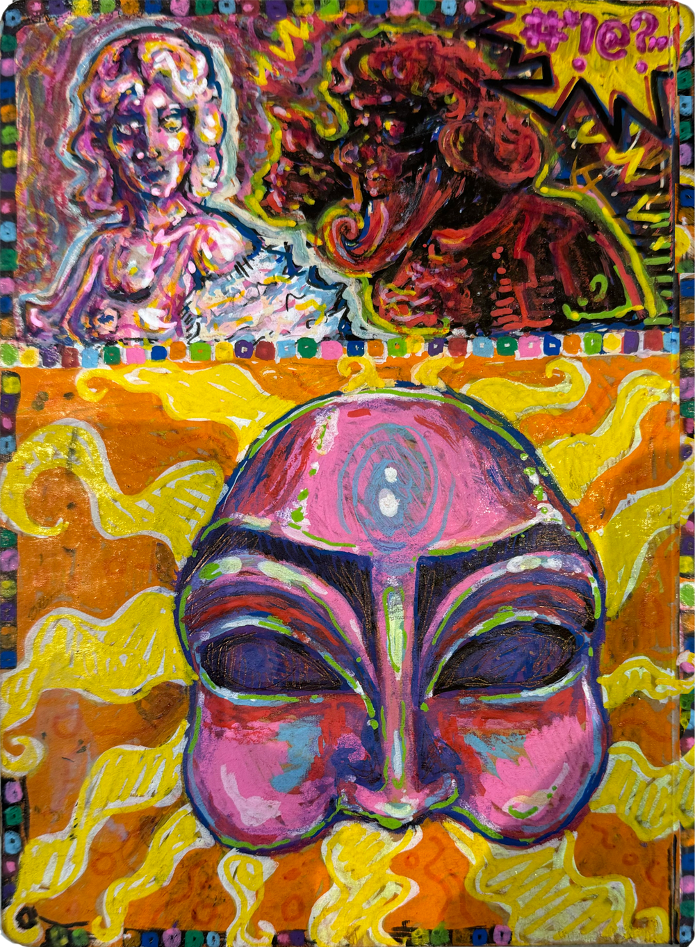 Study abroad drawing class final project–multimedia inspired by Venice Biennale. Uses found items, collage, oil pastel, paint, and clay.
